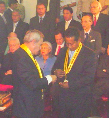 OTORGAN DISTINCIÓN MUNICIPAL A REGIDOR DE LIMAAlcalde del Rímac otorga distinción a regidor de LimaRímac, 02 Feb. (Imagen).- La sesión solemne que celebró esta tarde el Concejo Municipal del Rímac por su 88º aniversario del distrito, fue la ocasión propicia para el alcalde Víctor Leyton Díaz otorgar el más alto reconocimiento municipal al regidor metropolitano de Lima, Marcos Morón Novaro, por los logros deportivos alcanzados a nivel nacional e internacional, al ser cuatro veces campeón mundial de Karate Tradicional y cuatro veces sub campeón mundial, siete veces campeón panamericano, cuatro veces campeón sudamericano, además condecorado con la orden de los laureles deportivos del Perú. “Estos logros deportivos logrados por Marcos Morón Novaro, deja muy en alto en nombre del Perú y, hoy el Rímac le rinde un especial tributo al otorgar la medalla municipal.” Expresó el burgomaestre rimense mientras declaraba a la prensa antes de la toma de foto para el recuerdo