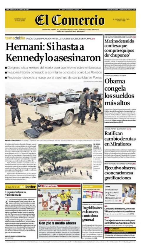 Portada de la edición del 22 de enero de 2009 del diario El Comercio
