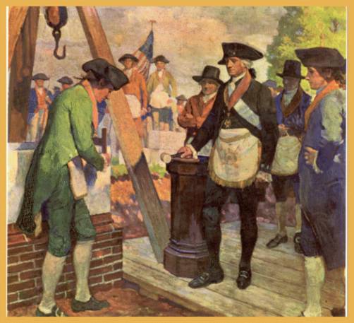 El Presidente George Washington coloca la primera piedra del edificio del mcapitolio.
