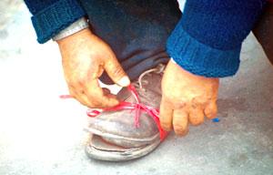 Me observa, lo observo. Intercambiamos miradas. Me sonríe. Pasa por mi lado y se detiene un par de metros más allá. Se inclina inmediatamente y voltea a mirarme. Veo en su mirada como que quiere decirme algo... Ya con un gesto me muestra el estado de sus zapatos. El triste testimonio de la pobreza en la que viven miles de nuestros compatriotas.