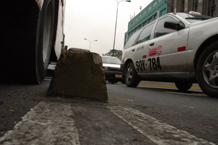 Todo sigue igual en la avenida Abancay. Estos famoso adoquines que estaban instalados en toda la avenida Abancay para poder tener más orden en el tránsito vehicular; tan solo quedan alguno.