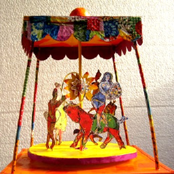 El origen de los circos se pierde en los tiempos, la actitud nómada de llevar el espectáculo a cuestas como un camello llevando a cuestas el paisaje propio. El circo también lleva en los carromatos su casa, y así camina descubriendo y compartiendo diferentes costumbres.Los Circos de tanto pueblo que visitan ha creado una leyenda de misterio y curiosidad que no se necesita ser niño para disfrutarlo, más bien es imperioso tener tener alma de niño para disfrutar con los trapecistas, payasos, malabaristas, domadores y cuanta cosa rara exista en el planeta. Siempre habrá un circo en algún pueblo perdido de nuestro territorio...Posiblemente Miriam Chiu Morillo, artista plástica, alma sensible que vivió su niñez en Nazca, alimentó y guardó en su retina imágenes de aquellos circos que transitaron. Miriam ahora los ha convertido en objetos de arte, jugando con las imágenes de las pinturas de estos grandes maestros del arte universal, para darles movimiento propio, hacer carruseles y llevarlos nuevamente al alcance de un niño... son bellísimos...