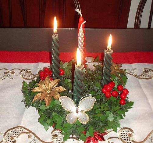 La corona de adviento se hace con follaje verde sobre el que se insertan cuatro velas. Tres velas son violeta, una es rosa. El primer domingo de adviento encendemos la primera vela y cada domingo de adviento encendemos una vela mas hastallegar a la Navidad. La vela rosa corresponde al tercer domingo y representa el gozo. Mientras se encienden las velas se hace una oración, utilizando algún pasaje de la Biblia y se entonan cantos. Esto lo hacemos en las misas de adviento y también es recomendable hacerlo en casa, por ejemplo antes o después de la cena. Si no hay velas de esos colores aun se puede hacer la corona ya que lo mas importante es el significado: la luz que aumenta con la proximidad del nacimiento de Jesús quien es la Luz del Mundo. La corona se puede llevar a la iglesia para ser bendecida por el sacerdote.Origen: La corona de adviento encuentra sus raíces en las costumbres pre-cristianas de los germanos (Alemania). Durante el frío y la oscuridad de diciembre, colectaban coronas de ramas verdes y encendían fuegos como señal de esperanza en la venida de la primavera. Pero la corona de adviento no representa una concesión al paganismo sino, al contrario, es un ejemplo de la cristianización de la cultura. Lo viejo ahora toma un nuevo y pleno contenido en Cristo. El vino para hacer todas las cosas nuevas.Nueva realidad: Los cristianos supieron apreciar la enseñanza de Jesús: Juan 8,12: «Yo soy la luz del mundo; el que me siga no caminará en la oscuridad, sino que tendrá la luz de la vida.». La luz que prendemos en la oscuridad del invierno nos recuerda a Cristo que vence la oscuridad. Nosotros, unidos a Jesús, también somos luz: Mateo 5,14 «Vosotros sois la luz del mundo. No puede ocultarse una ciudad situada en la cima de un monte."En el siglo XVI católicos y protestantes alemanes utilizaban este símbolo para celebrar el adviento: Aquellas costumbres primitivas contenían una semilla de verdad que ahora podía expresar la verdad suprema: Jesús es la luz que ha venido, que está con nosotros y que vendrá con gloria. Las velas anticipan la venida de la luz en la Navidad: Jesucristo.Las ramas de verde perenne recuerdan Jesús es la luz eterna. En los países fríos se escogen ramas de los árboles que no pierden sus hojas en el invierno, para simbolizar que Dios no cambia.El círculo nos recuerda que Dios no tiene principio ni fin, es eterno.Recordamos la larga espera de la Humanidad que, cayendo en pecado, vivía en oscuridad. El Pueblo de Israel recibió de Dios la promesa y los profetas la mantenían viva en los corazones. Nosotros, por el bautismo, estamos llamados a ser profetas y anunciar el reino de Dios. Es así que nosotros, en Cristo, somos luz.Fuente: Corazones