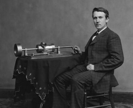 1877: Thomas Edison anuncia la creación del Fonógrafo, instrumento el cual reproduce música. Edison anunció la invención de su primer fonógrafo,la primera pieza interpretada fue:"Mary had a little lamb" ("Mary tuvo un corderito") el 21 de noviembre de 1877, mostró el dispositivo por primera vez el 29 de noviembre de ese mismo año y lo patentó el 19 de febrero de 1878