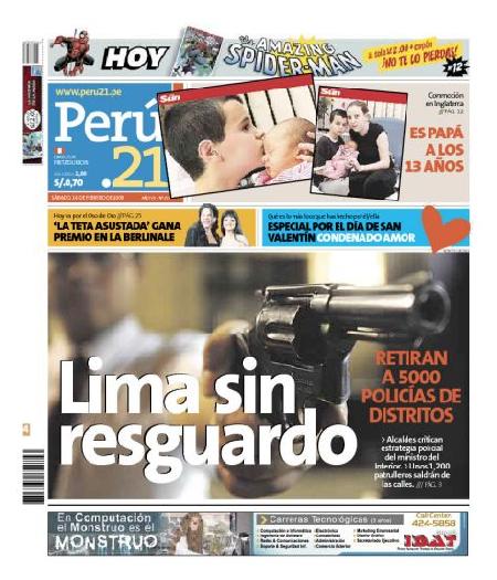 Portada de la edición del 14 de febrero de 2009 de Perú 21