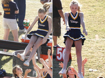 La joven actriz hace grandes pasos como porrista en su colegio.