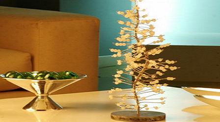 Paso a paso:Para lograr el tronco del pino, curva el tramo de hierro dulce, con golpes de martillo, dándole cierta ondulación hacia un lado y hacia otro. Perfora el centro del disco de madera y píntalo con aerosol plateado. Inserta el alambre en el disco de madera.