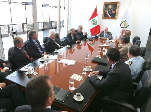 La reunión tuvo lugar en la sede ministerial, y en ella participaron el titular del sector; los viceministros de Recursos para la Defensa, Jakke Valakivi, y de Políticas para la Defensa, Mario Sánchez Debernardi.