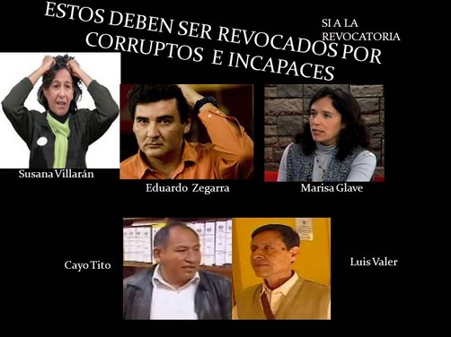 El Apra, tiene que instruir a sus militantes que la mejor forma de revocar a los incapaces del municipio de Lima, es seleccionar primero en la cedula de votación a la alcaldesa de Lima Susana Villarán, y los cuatros regidores metidos en corrupción por la licitaciones de rutas de transportes y trafico de terrenos, como Eduardo Zegarra, Marisa Glave, Luis Valer y Cayo Tito.