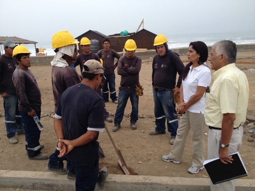 Hasta la playa llegaron los ex funcionarios de la Municipalidad de Lima, Patricia Juárez y Luis Baca Sarmiento, quienes comprobaron la situación en la que se encuentran los obreros de construcción.