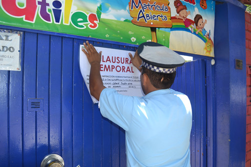 Los colegios, además de ser clausurados temporalmente, “deberán pagar una multa de S/. 2500 nuevos soles, para quien no cuenta con el permiso de funcionamiento, y hasta S/. 500 nuevos soles, los que muestran problemas de seguridad, así como regularizar su documentación para volver a funcionar”, señaló personal de la Policía Municipal.
