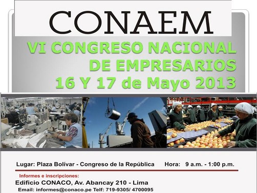 La Confederación Nacional de Comerciantes “CONACO”, el gremio empresarial más importante del país, con 67 años de vida institucional. Está organizando el VI CONGRESO NACIONAL DE EMPRESARIOS - CONAEM 2013. Así nos manifestó el presidente de este gremio institucional Moisés Mieses, quien viene trabajando arduamente con los sectores de la pequeña y micro empresa. En este evento se elaborara la agenda empresarial del país.