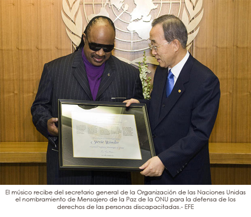 El músico estadounidense Stevie Wonder ha recibido el nombramiento de Mensajero de la Paz de la ONU para la defensa de los derechos de las personas discapacitadas, con el compromiso de triunfar en esta misión tal como lo ha hecho en el mundo de la música.