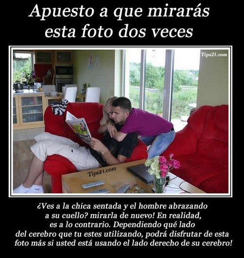 Respecto a la foto ¡es verdad!, en un principio vi a la pareja diferente y luego por segunda vez fue distinto!!!!! . Pero lo que mas me ha gustado es que hayas vuelto.