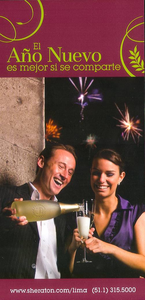 Y para el Año Nuevo, porque cada año lleva consigo muchos recuerdos y momentos especiales y es importante cerrarlo de la forma más adecuada, Sheraton Lima se encarga que usted reciba celebrando este 2010 dentro de la mejor fiesta, junto a la mejor música con todo el sabor y el ritmo de la agrupación del momento Toño Tamashiro y Malibú Internacional. Todo esto acompañado de una espectacular cena buffet y una botella de espumante (por pareja), cotillón importado y corcho libre.