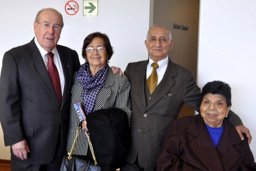 En el salón Tudor del Club de la Banca y Comercio se realizó la reunión de la Promoción 1958 de la Facultad de Derecho de la Universidad Nacional Mayor de San Marcos. Su actual Presidente es Elías Mendoza Habersperger, quien es uno de los personajes que ha tenido y tiene una antigua gravitación en la política peruana. Ministro de Justicia, también ha sido Diputado por Lima, Presidente de la Cámara de Diputados y Presidente del Congreso de la República. Ha sido distinguido con la Orden del Sol del Perú, la Orden de Honor del Congreso de la República y varias otras condecoraciones en reconocimiento por su labor realizada en bien del país. La promoción se reúne regularmente para departir entre colegas y conversar sobre diversos temas de actualidad, además de recordar la época en la que fueron estudiantes, teniendo como profesores a insignes y recordados catedráticos. Esta vez los ilustres abogados de la Promoción 1958 disfrutaron de los sabrosos platos especialmente preparados para la ocasión. Foto arriba: Elías Mendoza Haberperger, Evalina Gayoso, Gabriel Huerta Díaz y Judith Zamora. Abajo: Juan Manuel Del Aguila Tafur, Elías Mendoza Haberperger, Eduardo Pacheco Subauste, Víctor Américo Vargas Bustos, Gilberto Hinojosa Tevez y Oscar Alfaro Alvarez.