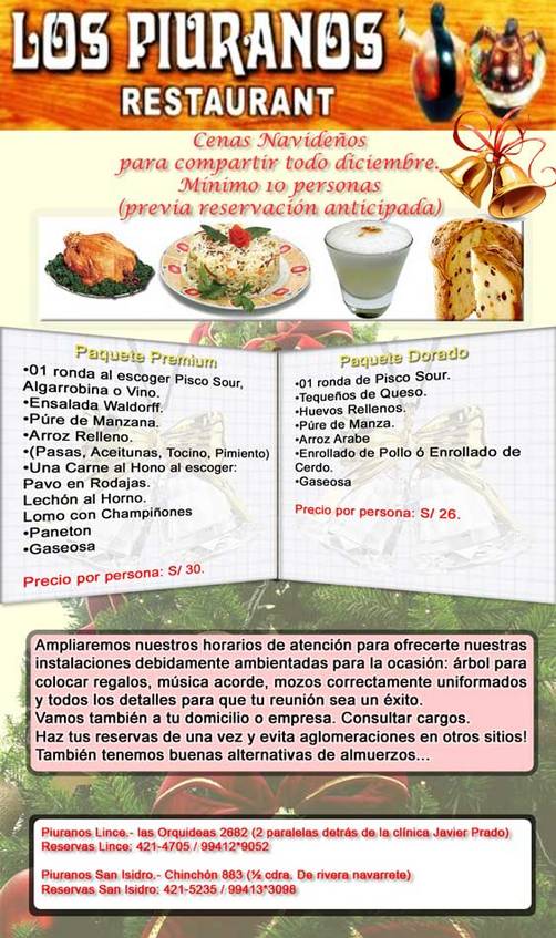 Cenas Navideñas: Retaurante Los Piuranos