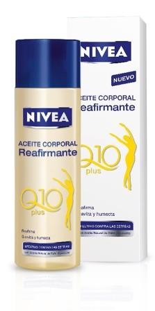 NIVEA, el experto en cuidado de la piel, desarrolló el nuevo Aceite Corporal Q10 Plus. Su fórmula a base de la Coenzima Q10, estimula la regeneración de la piel, mejora la elasticidad, nutre intensamente la piel y ayuda a prevenir y disminuir las estrías. El Aceite Corporal Q10 es seguro para ser usado durante el embarazo. Lo encuentras en farmacias y supermercados a S/. 23.5 (Precio Público Sugerido en Supermercados).