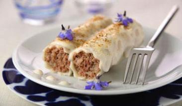 Ingredientes18 placas de canelones fácil El Pavo500 gr de carne variada guisada y picada1 sobre de Mi Salsa Bechamel1/2 lt. de leche4 cucharadas de Tomate Frito Gallina Blanca25 gr. de mantequilla50 gr. de queso parmesano ralladopimienta y nuez moscada aceite y salPreparación