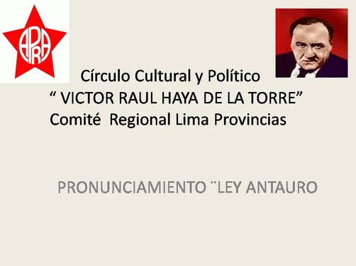 Siempre preocupados en que la Opinión Pública conozca Nuestra Realidad Nacional y Política, el Círculo Cultural y Político “Víctor Raúl Haya de la Torre” se Pronuncia sobre la famosa “LEY ANTAURO”, Ley Promulgada con nombre propio, siguiendo el estilo OLLANTAMONTESINISTA: