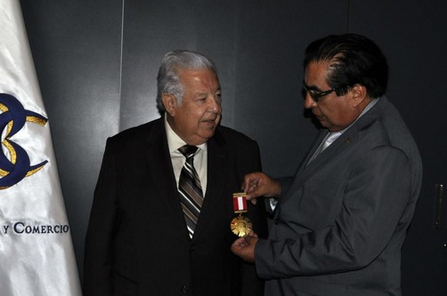 El Club de la Banca y Comercio se vistió de gala pues nuestro presidente Julio A. Salazar Moscoso fue condecorado por la Comisión de Relaciones Internacionales del Colegio de Abogados. El Dr. Guillermo Ruiz Caro, presidente de dicha comisión otorgó el alto galardón a don Julio, en mérito a sus notables acciones en defensa de los derechos ciudadanos de los peruanos en el exterior, y a sus altas cualidades en su desempeño en instituciones internacionales.