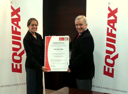 Lima, 30 de enero de 2014. Equifax Perú S.A., la mayor central de riesgos del Perú con 18 años de experiencia como líder del mercado peruano, logró obtener la certificación ISO 9001 : 2008 a la calidad y eficiencia de sus procesos, otorgada por la Internacional Standard Organization, tras superar con éxito un riguroso proceso de auditoría efectuado por la certificadora Bureau Veritas.