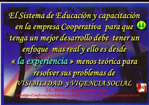 COOPERATIVISMO PERUANO EN ACCIÓN POR LOS 50 AÑOS DE VIGENCIA LEY GENERAL DE COOPERATIVAS (14-12-1964 al 14-12-2014) la estrategia es : “MAS EDUCACIÓN DESDE LA EXPERIENCIA”.