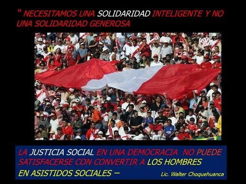 SE NECESITA UNA SOLIDARIDAD INTELIGENTE PARA LLEVAT A LA REALIDAD LA JUSTICIA SOCIAL EN EL PERU