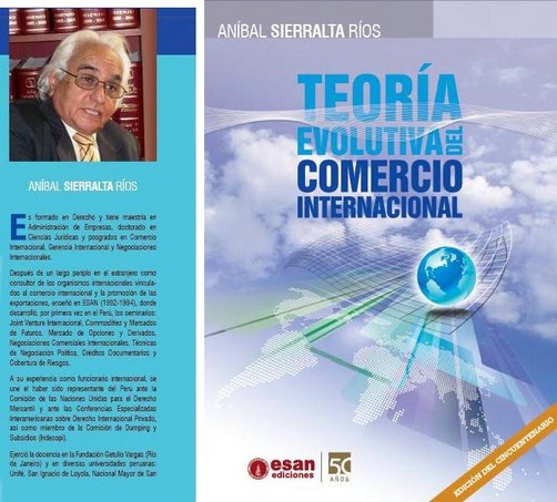 El destacado jurista y consultor internacional Aníbal Sierralta Ríos, presenta a la comunidad académica su nueva obra “Teoría Evolutiva del Comercio Internacional”, que se suma a las bibliografías especializadas de su autoría sobre el estudio del comercio internacional y sus incidencias en la economía, el derecho, la política y la cultura.En la primera parte de esta obra, el Doctor Sierralta, hace una revisión de las teorías clásicas del comercio internacional y el desarrollo que han tenido para explicar y definir el comercio internacional o mundial, tales como el intercambio de bienes, productos y servicios entre dos o más países o regiones económicas, práctica que permite a través del librecambio, aumentar el bienestar de los países. El sustento básico de estas teorías era la existencia de competencia perfecta, y a lo largo de los años fueron retocadas y ampliadas pero nunca sustituidas.En la segunda, desarrolla las claves fundamentales de la teoría evolutiva del comercio internacional.