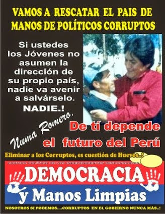 EL PERÚ SUMIDO EN EL CAOS POLÍTICO Y LA CORRUPCIÓN Los jóvenes han sido los primeros en reaccionar frente a decisiones equivocadas del gobierno, que buscaban réditos políticos de los jóvenes con una ley de promoción de trabajo para los jóvenes, que se ha convertido en un BUMERAN, que les ha caído en sus cabezas y rebalsado la gota que ha derramado el vaso de la tolerancia y la indiferencia de los ciudadanos que conviven con la CORRUPCIÓN. EL ESCÁNDALO COTIDIANO DE NEGOCIADOS Y SAQUEOS SISTEMÁTICOS DE LOS FONDOS DEL ERARIO NACIONAL, de élites y entornos del poder del GOBIERNO Y GRUPOS DE POLÍTICOS, que se les ha caído la careta y a la luz del PUEBLO INDIGNADO ..que con las denuncias periodísticas descubre que SON MAFIAS ORGANIZADAS QUE HAN CAPTURADO EL PODER Y EL APARATO ESTATAL EN LAS REGIONES,LOS MUNICIPIOS Y EL GOBIERNO , más que evidente con el escándalo MARTÍN BELAUNDE,...ORELLANA y cada vez son más LOS PERSONAJES DEL ENTORNO PRESIDENCIAL QUE INTEGRAN LAS MAFIAS DELINCUENCIA LES. .que han llegado a corromper las entrañas mismas del Ministerio Público ,el Poder Judicial y la Controlaría...y que no decir de las altas esferas de la Policía Nacional....demostrada con el caso López Mene ses, con Orellana y el ex héroe Policial BENEDICTO JIMENES. AHORA SON LOS JÓVENES LOS LLAMADOS A LIDERAR UNA CAMPAÑA PARA RECUPERAR AL PERÚ DE MANOS DE MAFIAS POLÍTICAS CORRUPTAS...que manejan los partidos políticos y que se coluden, para controlar el poder y el gobierno y repartirse el dinero del estado...como su botín...al mismo estilo de los piratas y corsarios.... HAY UNA SOLA MANERA DE CORTAR LOS TENTÁCULOS A ESE GRAN PULPO QUE ES LA CORRUPCION...ES LA DERROTA EN LAS URNAS..!! COMO LO HAREMOS…?...CON UN NUEVO PARTIDO POLITICO DE LOS INDEPENDIENTES RESPONSABLES.QUE ESTAMOS ORGANIZANDO CON LA MAYOR RESERVA DEL CASO...PARA EVITAR LA INFILTRACION DE LAS MAFIAS..