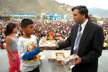 Este domingo 13 de diciembre, la iglesia evangélica IELA a cargó del pastor Ernesto Alarcón por segundo año consecutivo estará regalando mas de 1000 juguetes, chocolates y panetones para los niños mas pobres del distrito de san Juan de Lurigancho, de esta forma esta iglesia nos muestra la fe que hay que tener para poder lograr esta hermosa obra de caridad para los mas necesitados del país en donde asistirán autoridades del distrito y autoridades y funcionarios del gobierno