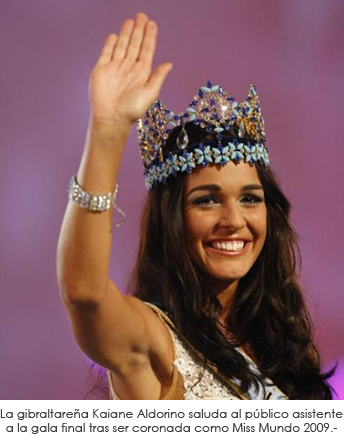 La representante de Gibraltar, Kaiane Aldorino, ha sido proclamada hoy Miss Mundo 2009 en Johannesburgo (Suráfrica) tras el tradicional desfile de 16 finalistas, elegidas de entre 112 concursantes procedentes de todos los continentes. Aldorino, quien ha recibido además el premio Miss Belleza Playera, ha tenido a la mexicana Perla Beltrán Acosta y a la surafricana Tatum Keshwar como primera y segunda damas de honor.
