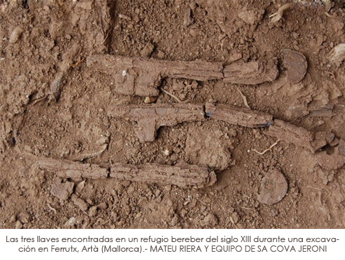 Son las tres llaves de los últimos rebeldes de Mallorca en el siglo XIII. Los restos de las piezas forjadas, que se usaron por última vez en marzo de 1230, han sido halladas en buen estado en un abrigo intacto de un acantilado donde resistieron unos veinte payeses mallorquines sarracenos, bereberes de Iraten (Artà). Aquellos isleños de Al Andalus huían de la conquista de la isla emprendida por el rey catalán Jaume I que dominó Palma (Medina Mayurka) el 31 de diciembre de 1229 y después instaló "un reino sobre el mar" y ocupó toda Mallorca. El episodio está narrado por el monarca en su crónica El llibre dels fets. Los sarracenos de Artà huyeron con las llaves de sus viviendas porque seguramente tenían previsto regresar a sus posesiones, pero quedaron cautivos, esclavizados por las tropas de los caballeros y magnates que reunió Jaume I. Ahora se ha hallado la prueba de aquella razia contra los últimos resistentes a la invasión.