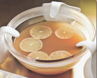 Calentar todos los ingredientes, menos las rodajas de naranja, en una cacerola.Bajar el fuego cuando hierva y cocinar por 10 minutos más.Refrigerar por 1 hora.Calentar de nuevo, adornar con rodajas de naranja y servir.Fuente: Recetasgratis