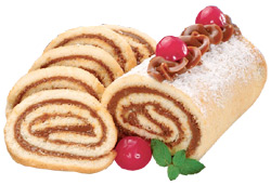 Para el relleno, prepara una crema con la yema de huevo, 50 gr. de mantequilla, el azúcar, el ron, el cacao amargo y el puré de castañas. Una vez pasada la hora de refrigeración, saca la masa y desenróllala. Unta la crema preparada en el bizcocho y vuelve a enrollar.