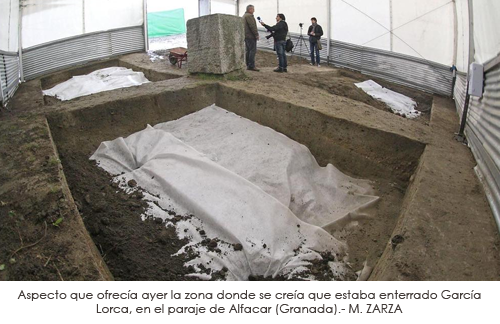 La ciencia barrió ayer de un plumazo las teorías y las numerosas especulaciones y testimonios infundados sobre el paradero de los restos del poeta Federico García Lorca. Vecinos e historiadores habían fijado durante décadas el paraje de Alfacar (Granada) como la zona donde fue fusilado y enterrado el poeta español más universal. Pero ayer los arqueólogos arrojaron luz sobre tanto misterio. Homenajes, emociones y besos sobre el terreno se volvieron papel mojado. Fallaron los testimonios orales, los pilares de un castillo de arena construido año tras año. Sobre él se apoyaban cuatro familias para pedir la exhumación de restos. Al final, La Junta de Andalucía, accedió.