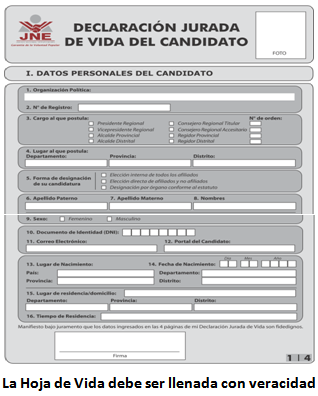 En noviembre de 2006 el JNE reveló la existencia de 216 casos de candidatos a gobiernos regionales y locales que mintieron en sus datos. Más de 150 ocultaron sus antecedentes penales y más de 50 falsearon en información académica y experiencia laboral, casos que fueron remitidos al Ministerio Público, desconociéndose la apertura de algún proceso penal. En el actual Congreso no son pocos los congresistas que han omitido o falseado información, lo que ha generado un debate sobre la necesidad de mejorar el mecanismo de transparencia.