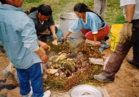 Era mi primera vez en una pachamanca. Me quedé boquiabierto admirando el montículo de tierra del que salían las volutas blancas que se enroscaban y desenroscaban en el aire. Los aros buscaban el cielo como Hendrix en Purple Haze: Excuse me while I kiss the skyyyyy!.
