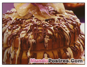 1. Precalentar el horno a 180ºC. Engrasar dos moldes redondos de diferentes tamaños y revestirlos.2. Batir la mantequilla y el azúcar hasta obtener una crema ligera. Agregar poco a poco los huevos y la ralladura de naranja y batir, añadir un poco de harina para evitar que se corte. Incorporar el resto de la leche, y remover con movimientos envolventes. Poner en los dos moldes y alisar las superficies.3. Cocer el del molde pequeño 30-35 minutos, y el grande, 40-45 minutos, hasta que estén dorados. Dejarlos enfriar en los moldes, volcarlos y retirar el papel.4. Fundir el chocolate con leche con el negro; derretir aparte el blanco. Aplicar un poco de chocolate sobre el pastel grande y asentar el pequeño. Decorar y dejar reposar.Fuente: Mundpostres