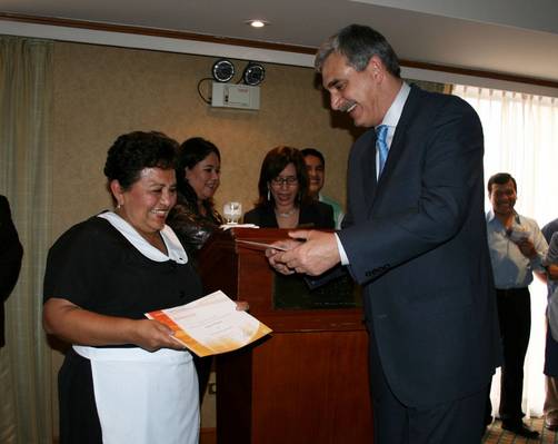 A continuación y como todos los años, se procedió a la premiación del Asociado del Año, haciéndose acreedora a tan importante distinción Luzmila Romero, del Departamento de Ama de Llaves. Alex Vautravers, quien hizo entrega del premio tuvo palabras de elogio y agradecimiento, mencionando que Luzmila es una persona que ha demostrado a lo largo del año una dedicación constante en el servicio. La calidad de servicio que ofrece es lo que la caracteriza, así como su actitud y entrega, que es en esencia el deseo y la convicción de ayudar y adelantarse a las necesidades de los huéspedes, tratando siempre de dar una solución a cualquier problema o inquietud. Luzmila, conocida entre sus compañeros como “Lucy”, es consciente que el éxito de la empresa se basa en las relaciones afectivas y conexiones que se crea entre el Hotel y sus huéspedes, cuidando de ellos y haciendo que su estadía sea más que placentera, es decir, que se sientan como en su propia casa.