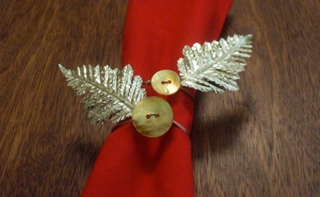 Coloca el elemento decorativo de forma que quede sujetado por los botones. Mantenlos en su lugar con tu mano y fijalos con los alicates.