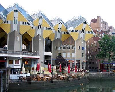 Desde el final de la segunda guerra mundial, cuando Róterdam fue derruida por los bombardeos, sus ciudadanos emprendieron una pujante labor de reinvención de la ciudad, colocándola en la actualidad en un laboratorio de formas arquitectónicas. Hay dos formas excelentes de hacer un tour por esas nuevas edificaciones. En bicicleta o en lancha zodiac se puede ver de manera lúdica el nuevo skyline de la preciosa ciudad portuaria. Hay interesantes edificios de Renzo Piano, JHK Architecten, R. Koolhaas, Van Berkel Bos, Marcel Breuer y otros arquitectos que compiten en audacia formal y de utilidades. Estas nuevas construcciones dialogan de manera natural con edificios de estilo tradicional como en el antiguo puerto o en el edificio de Unilever, en el que sobre una gran casa de estilo dieciochesco se colocó una estructura cubicular sobre pilastras.