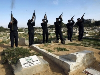 Oficiales de policía del Hamas en el cementerio de Rafah, en el sur de Gaza durante la ceremonia del 1er aniversario de la ofensiva israelí, 27 de diciembre de 2009. Foto: Reuters