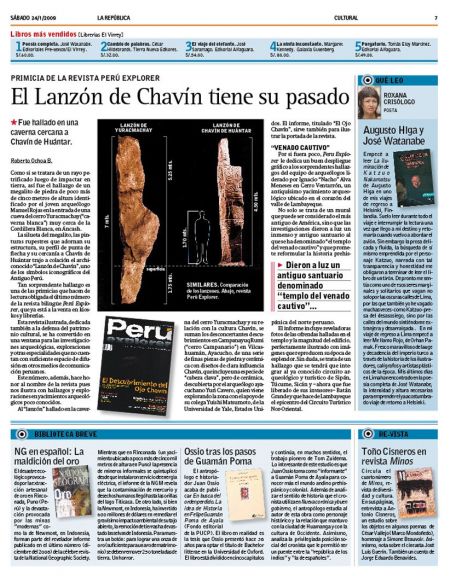 Artículo, basado en la primicia de la revista Perú Explorer, publicado en la edición correspondiente al 24 de enero de 2009 del diario peruano La República