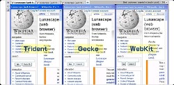 El build fue hecho en Navidad Los motores son opcionales durante la instalación, y deben ser descargados de la redLunascape propone algo distinto: Tener acceso a tres motores JavaScript a la vez. El motor Trident ya está disponible gracias a la presencia de Internet Explorer en el sistema operativo, pero Gecko y WebKit son motores opcionales que pueden ser instalados a voluntad del usuario. Además de ofrecer esta posibilidad, el nuevo Lunascape también incorpora compatibilidad con extensiones Firefox bajo el motor Gecko (abriendo camino a una enorme cantidad de extensiones disponibles), y una nueva interfaz un poco más ordenada que la anterior. El cambio de motores es dinámico, por lo que si una página presenta algún problema bajo cierto motor, puede ser cambiado en el acto para presentarla de forma correcta. Al mismo tiempo, es posible visualizar aquellas páginas que aún presentan ciertas restricciones, y que sólo pueden ser visitadas con un navegador determinado.
