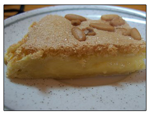 2 placas de hojaldre2 huevos1 sobre de crema catalana Royal1/2 litro de leche150 gr. de piñonespiel de un limónuna pizca de salunas gotas de zumo de limón